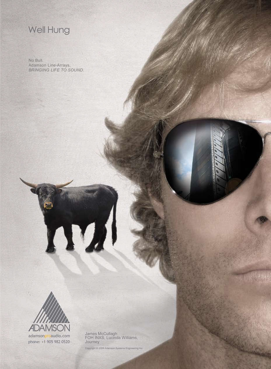 Adamson Systems is a global leader in manufacturing of professional loudspeaker technology. This series of ads mandate was to be smart, eye-catchy, risqué, and include high-profile industry professionals, as well as feature loudspeakers in a non-conventional way. The concept was a collaboration with the Marketing & Sales team. Multiple pairs of sunglasses were sent to FOH engineers worldwide, who then found a wall to stand in front wearing the glasses, and had a friend take a snapshot. Needless to say the quality of images was variable, so it took a lot of photo retouching and manipulation to attain the final results. Challenge was to try to reach a uniformity in color and lighting. A photoshoot was also held for the "Marilyn Monroe", "Bikini Girl" And "Black Panther" characters to capture the right feel. My job was to execute a simple, clean layout and design, manipulate all source photography, as well as coming up with catchy copywriting for the head- and tag lines.